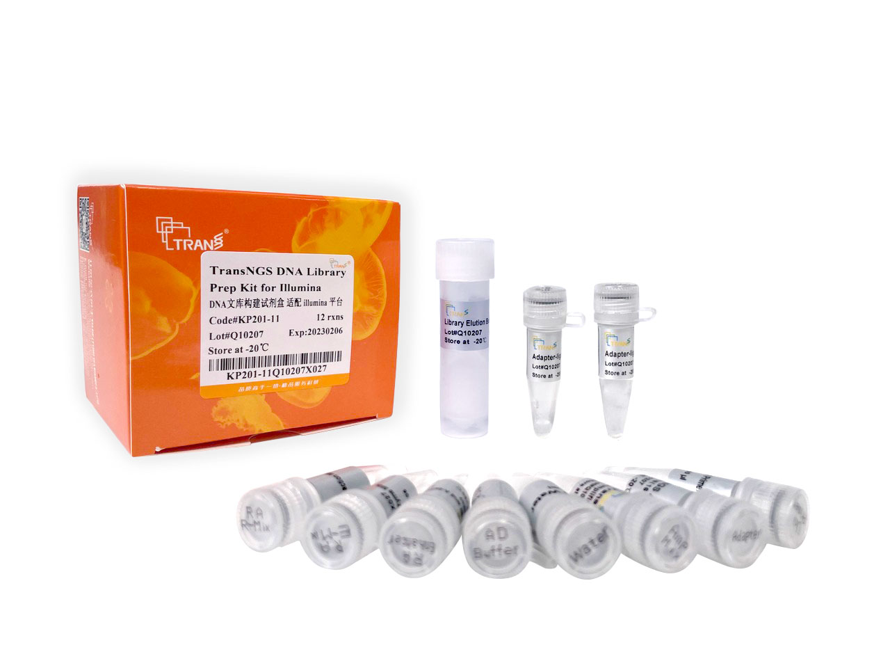 TransNGS? DNA Library Prep Kit for Illumina?是針對Illumina高通量測序平臺開發(fā)的,適用于將1 ng-1 μg片段化的dsDNA高效快速地構建為測序文庫試劑盒。本試劑盒的樣本可為超聲打碎的基因組DNA、酶切產物、核酸擴增產物、免疫共沉淀DNA (ChIP DNA)、石蠟切片DNA (FFPE DNA)等片段化的dsDNA,并可結合外顯子或其它靶向捕獲試劑(包括Agilent SureSelect?和Roche NimbleGen SeqCap? EZ系列)進行外顯子測序或靶向捕獲測序。