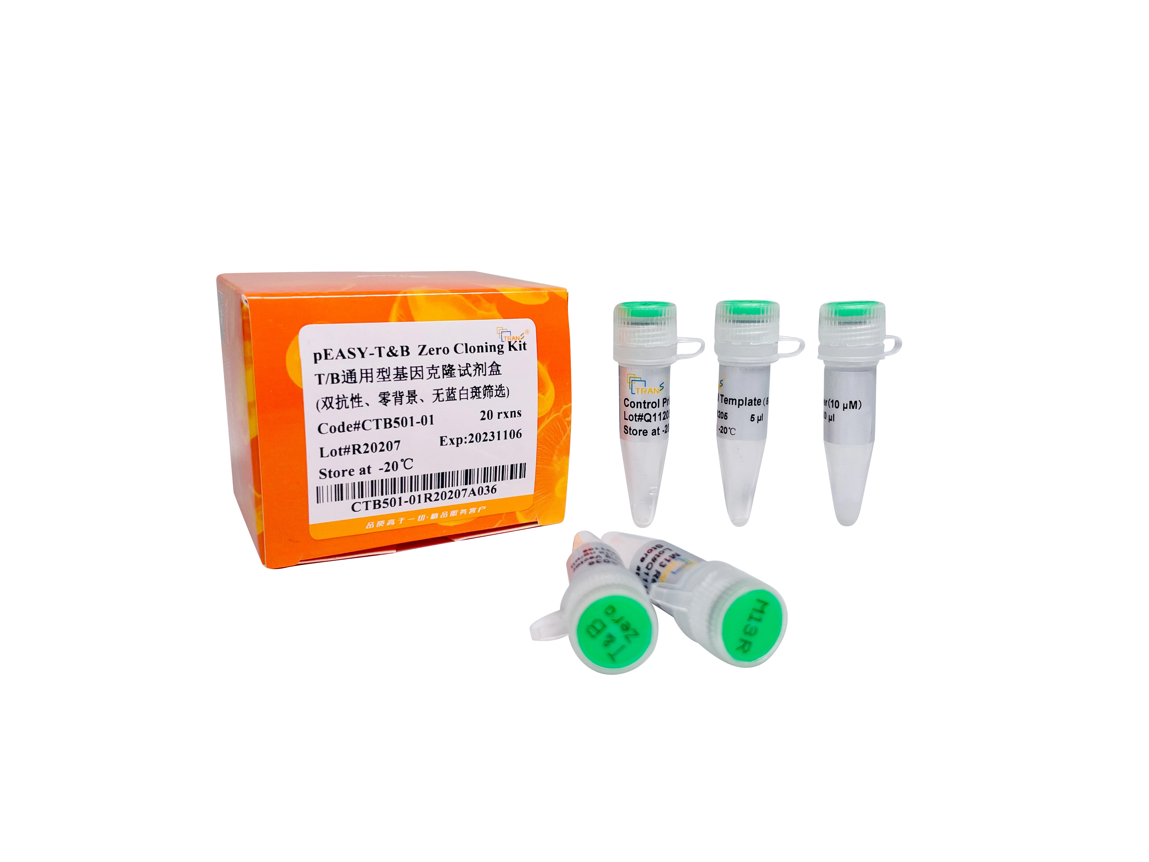 該載體通過自殺基因表達(dá)與否篩選陽性重組子。當(dāng)載體與片段連接成功時(shí),自殺基因無法正確表達(dá),包含重組子的細(xì)胞可以正常生長(zhǎng);當(dāng)載體與片段連接不成功時(shí),自殺基因正確表達(dá),包含載體的細(xì)胞無法生長(zhǎng),即“Zero”背景。本產(chǎn)品使用獨(dú)特的載體制備工藝,可以兼容TA克隆與平末端克隆。