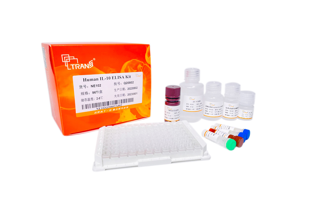 本試劑盒采用雙抗體夾心ELISA法定量測定人血清、血漿和細(xì)胞培養(yǎng)上清中的IL-10含量。本試劑盒采用高親和力的抗人IL-10抗體預(yù)包被酶標(biāo)板,將標(biāo)準(zhǔn)品/待測樣本加入微板孔中,經(jīng)過孵育后樣本中存在的IL-10會與酶標(biāo)板上的預(yù)包被抗體特異性結(jié)合。洗滌去除未結(jié)合物后,將生物素標(biāo)記的抗人IL-10檢測抗體加入微板孔中,再次孵育后檢測抗體會與錨定在酶標(biāo)板上的IL-10特異性結(jié)合。隨后,將辣根過氧化物酶標(biāo)記的鏈霉親和素(Streptavidin-HRP)加至微孔板中并孵育,通過檢測抗體上的生物素和鏈霉親和素發(fā)生的高強度非共價結(jié)合,形成“包被抗體-人IL-10蛋白-檢測抗體-Streptavidin-HRP”免疫復(fù)合物。再次洗滌后,將顯色底物TMB加至微板孔中,HRP會催化TMB底物生成藍色產(chǎn)物,顏色反應(yīng)的深淺將與樣本中IL-10的濃度成正相關(guān)。而后加入終止液終止反應(yīng),在450 nm波長(參考波長570 - 630 nm)處測定吸光度值。通過繪制標(biāo)準(zhǔn)曲線,由樣本吸光度值可計算出樣本中所含IL-10濃度。本試劑盒特異性強、檢測靈敏度高,同時操作更加便捷。