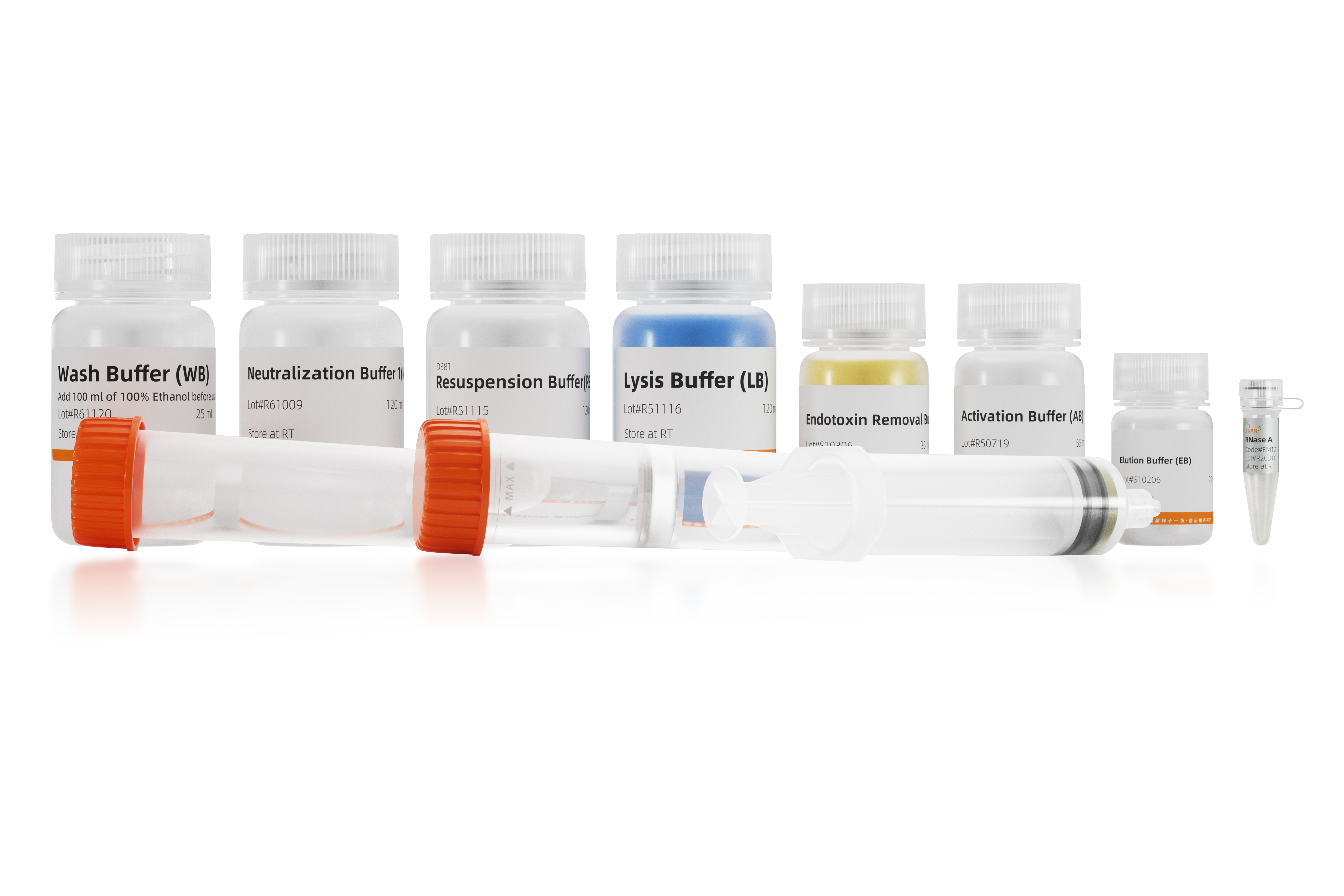 本試劑盒采用改良的堿裂解法裂解大腸桿菌細(xì)胞,利用硅膠膜離心柱特異地吸附DNA,適用于從≤500 ml LB培養(yǎng)基培養(yǎng)的大腸桿菌細(xì)胞中高效地提取質(zhì)粒DNA。溶液包含指示劑,通過顏色的變化,指示裂解、中和是否完全,從而保證質(zhì)粒提取的質(zhì)量,實現(xiàn)操作的可視化。全新內(nèi)毒素去除方案可使內(nèi)毒素水平最低可至0.001 EU/μg。提取的質(zhì)粒DNA適用于酶切、連接、轉(zhuǎn)化、測序和轉(zhuǎn)染等實驗。