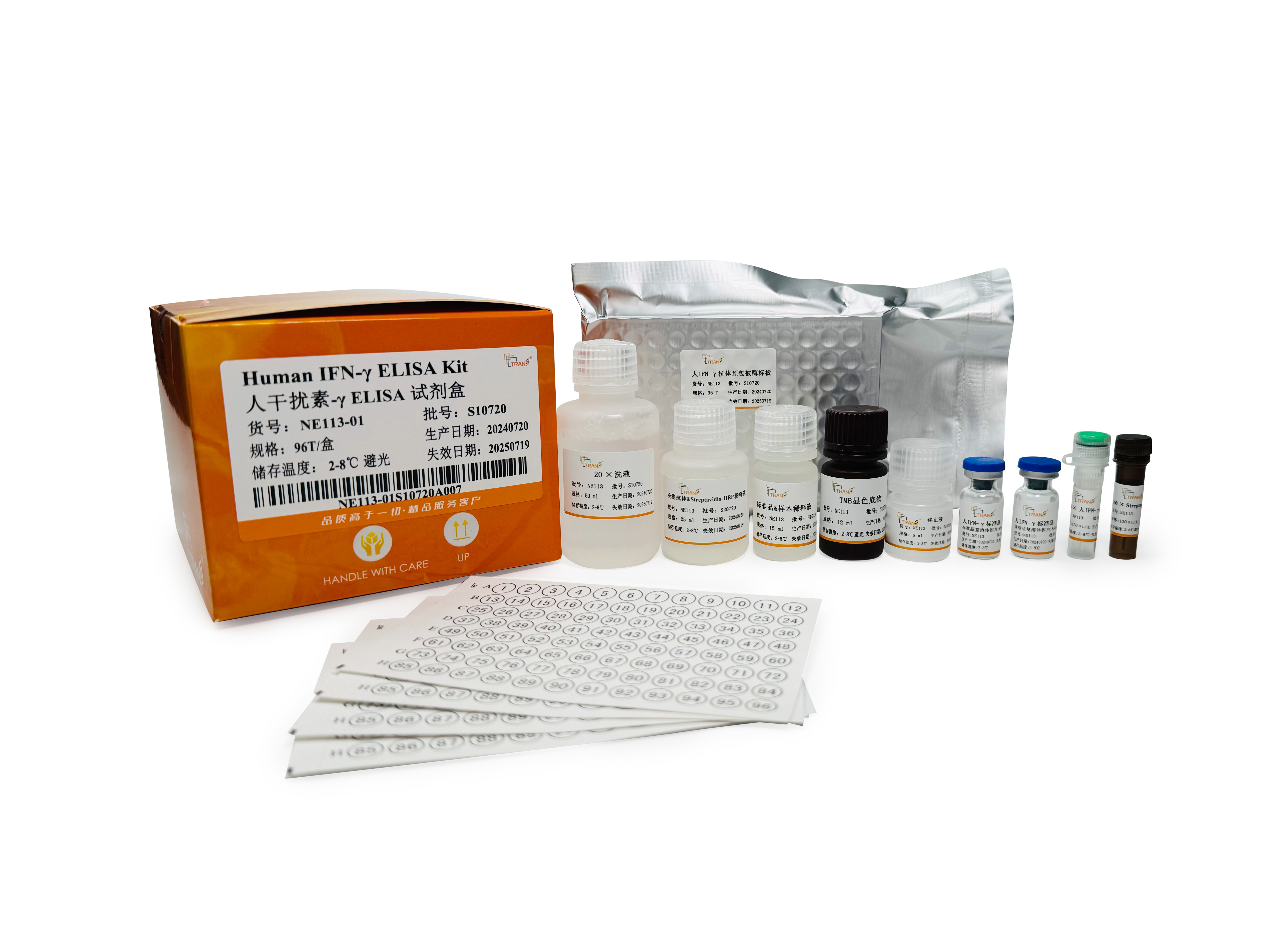 干擾素γ (interferon γ,IFN γ), 是II型干擾素的唯一成員,是一種水溶性二聚體細胞因子,主要由CD8+ T細胞、Th1 CD4+ T細胞、自然殺傷細胞(NK)和自然殺傷T細胞(NKT)在各種刺激下分泌。IFN γ通過抑制Th2細胞分化,刺激Th1細胞增殖,促進巨噬細胞活化,誘導II 型主要組織相容性復合物(MHC II)表達,具有廣泛的生物學功能,如抗病毒、 抗腫瘤、免疫調(diào)節(jié)等。干擾素-γ對抵抗病毒、某些細菌和原生動物感染的固有免疫和適應性免疫具有重要作用。在很多不同病理情況下包括感染、自身免疫疾病、移植排斥、過敏反應和糖尿病中,IFN γ可作為疾病標志物。