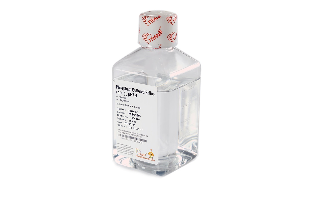 PBS,即磷酸鹽緩沖液,含有1.06 mM KH2PO4,155.17 mM NaCl,2.97 mM Na2HPO4,pH值為7.4??蓮V泛應(yīng)用于細(xì)胞洗滌、組織細(xì)胞分離、細(xì)胞計(jì)數(shù)、抗體及細(xì)胞因子稀釋等。本品不含有Ca2+、Mg2+和酚紅,經(jīng)過濾除菌,可直接使用。