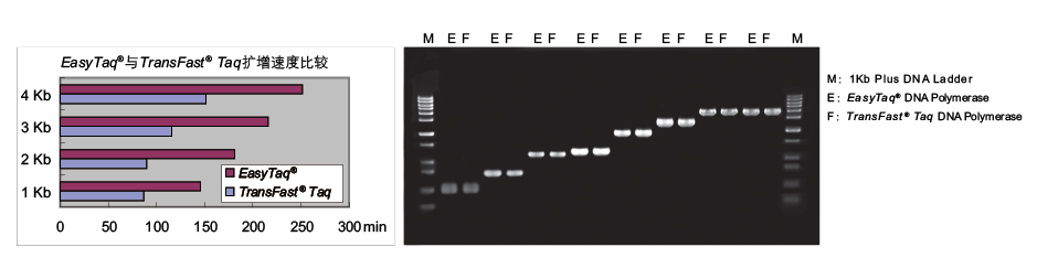 TransFast? Taq DNA Polymerase 是通過基因改造技術(shù)實(shí)現(xiàn)快速擴(kuò)增的DNA聚合酶,其分子量為94 kDa。具有5'→3' DNA聚合酶活性和5'→3'外切酶活性,無3'→5'外切酶活性。