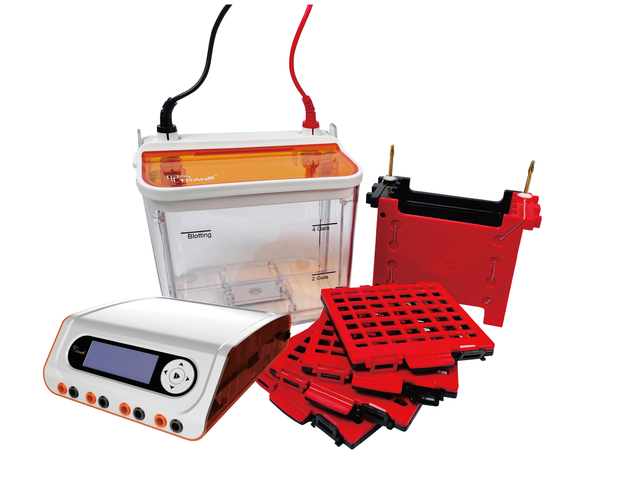 ? 不同顏色標記的轉印夾和電極,確保轉印過程的樣品向正確的方向泳動。