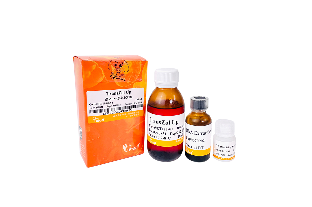 TransZol Up利用異硫氰酸胍裂解細胞。在樣品的裂解過程中,TransZol Up可保持RNA完整性,加入RNA Extraction Agent后,溶液分為無色水相和粉紅色有機相,RNA在水相,用異丙醇可沉淀回收RNA,有機相用異丙醇可回收蛋白質。TransZol Up與其它總RNA提取試劑相比,裂解能力強、速度快,RNA的提取量與純度更高。適用于快速提取多種組織和細胞中的總RNA。